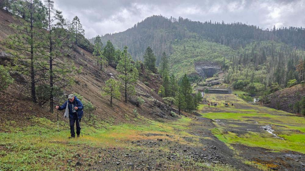 The showers held off until we were hiking back to the TH, so we had a good time enjoying the sight of the Spring green valley and our exploration of the Elk Creek "notched" Dam.