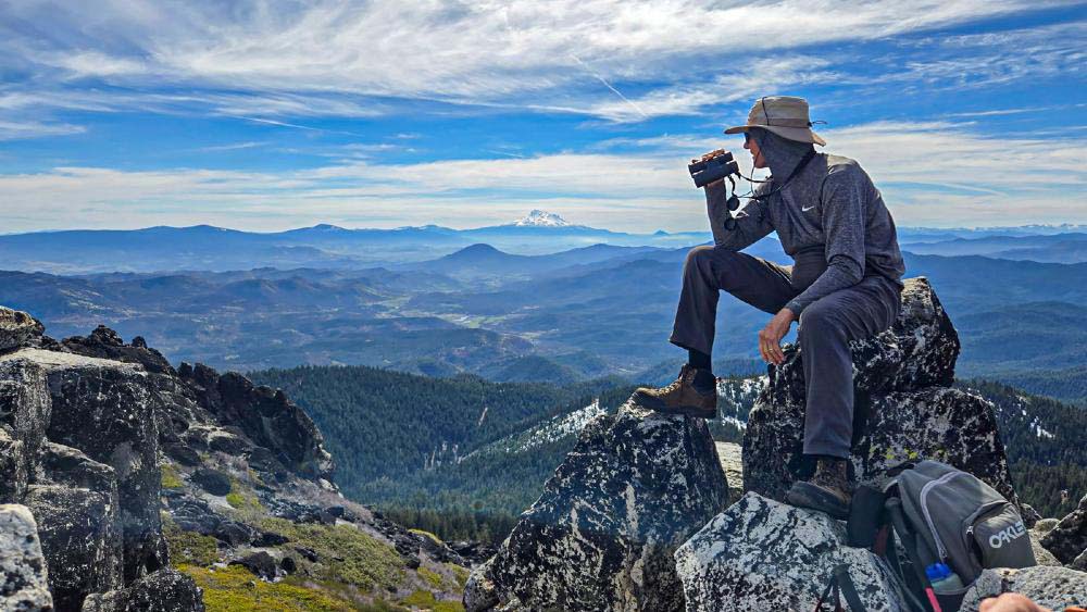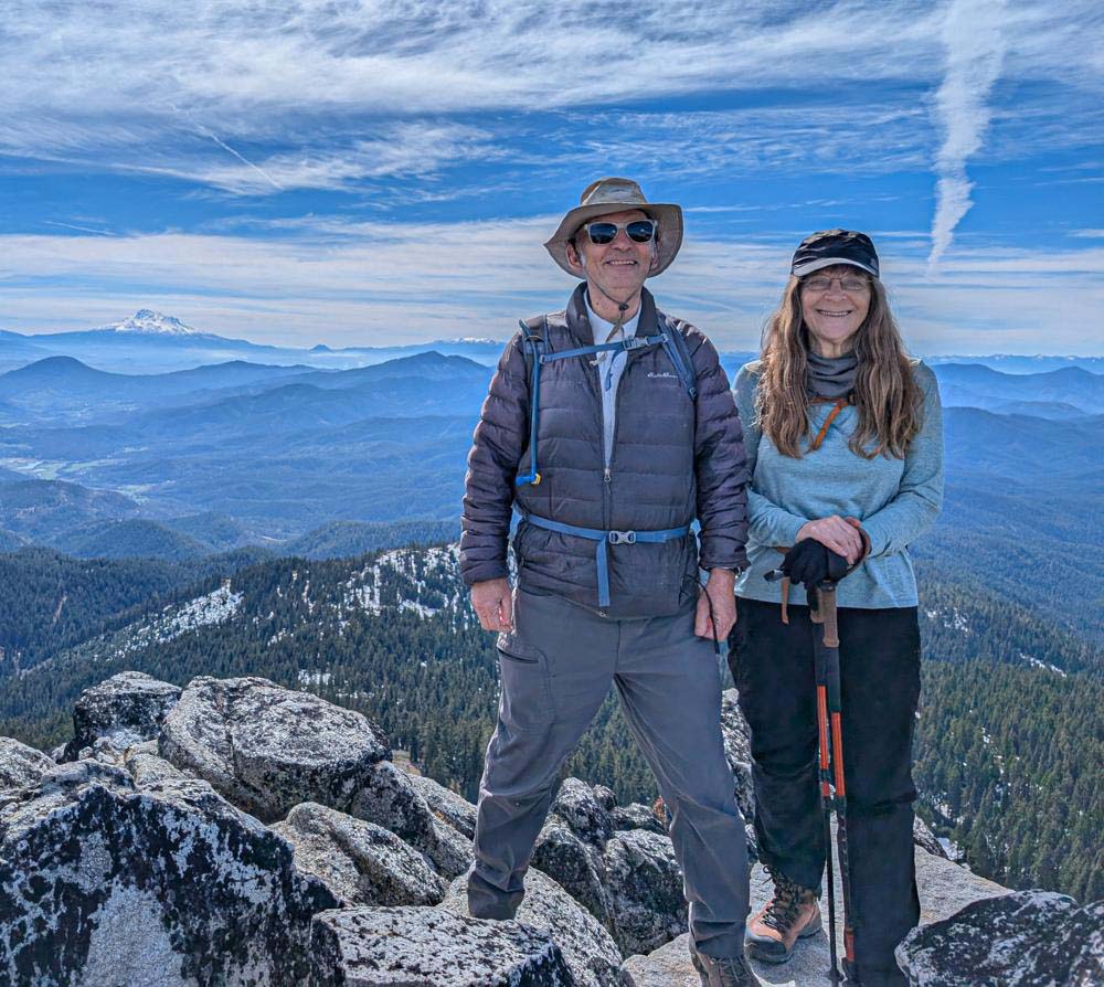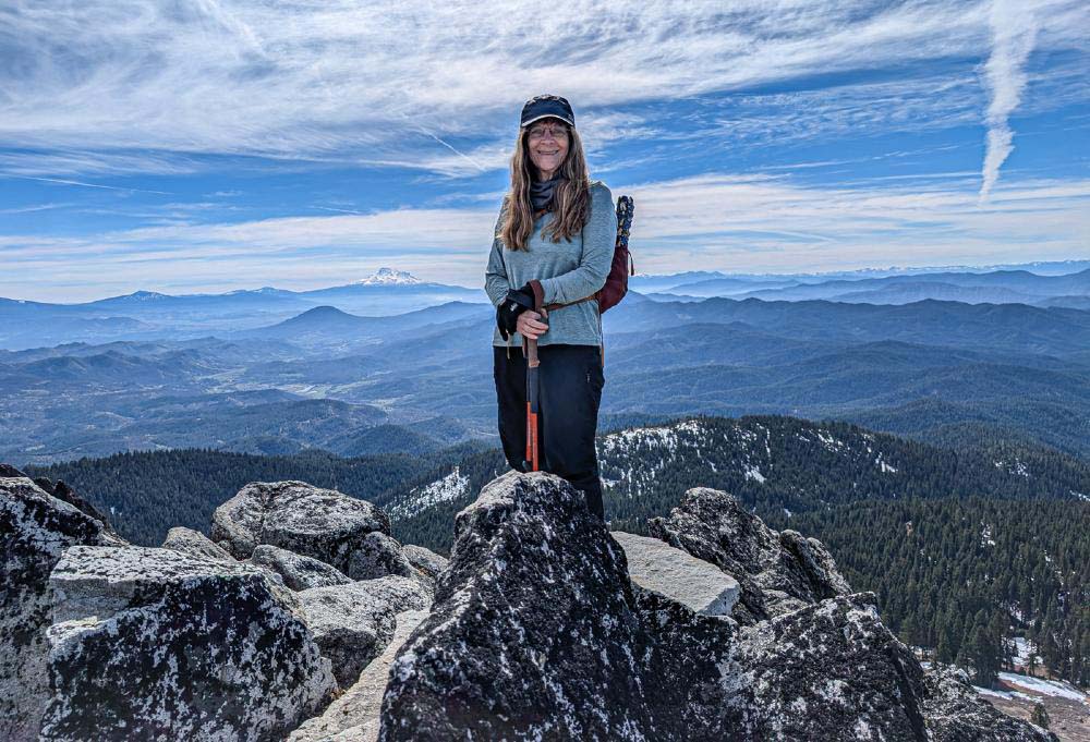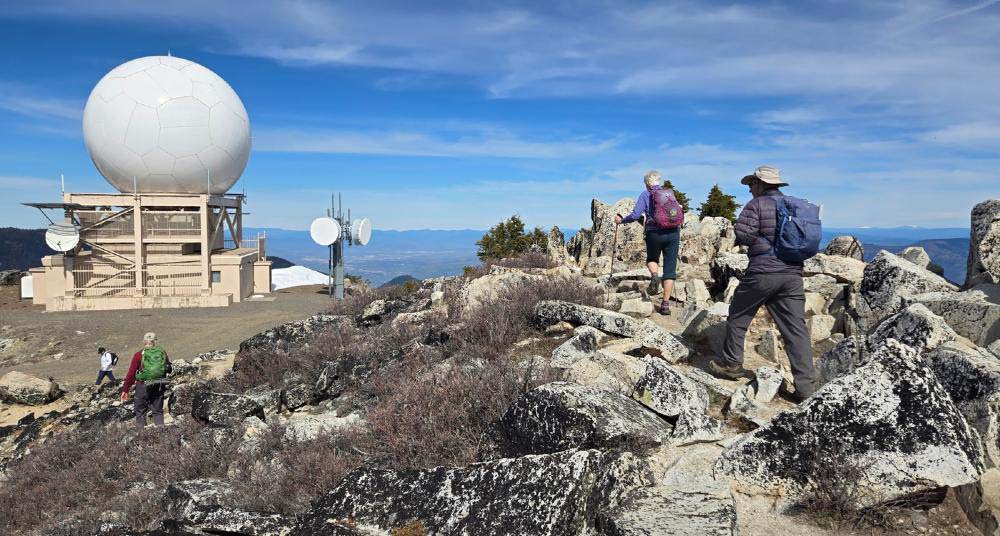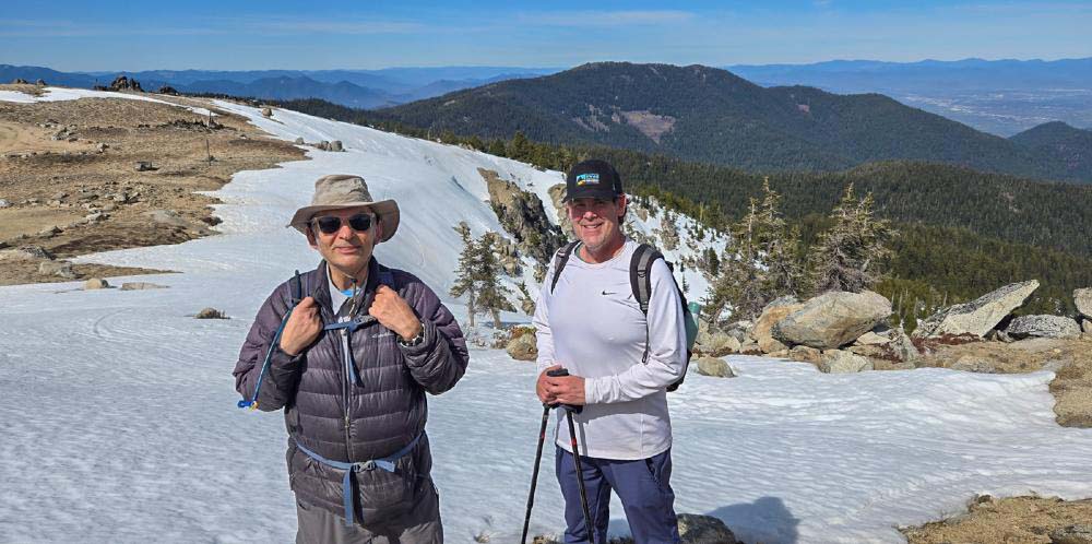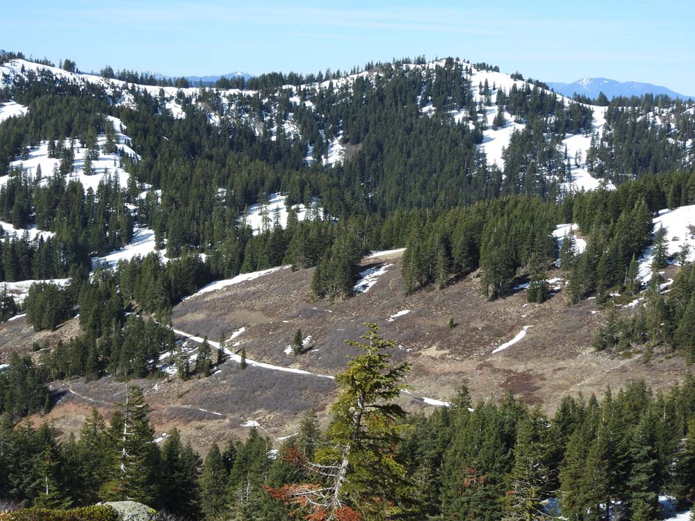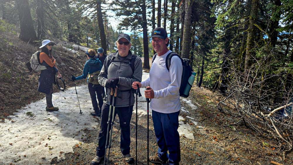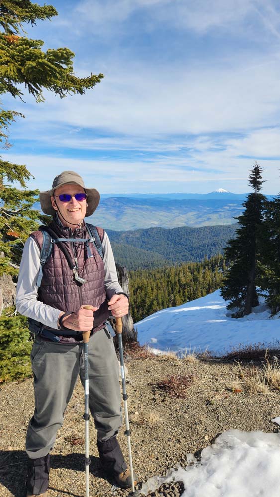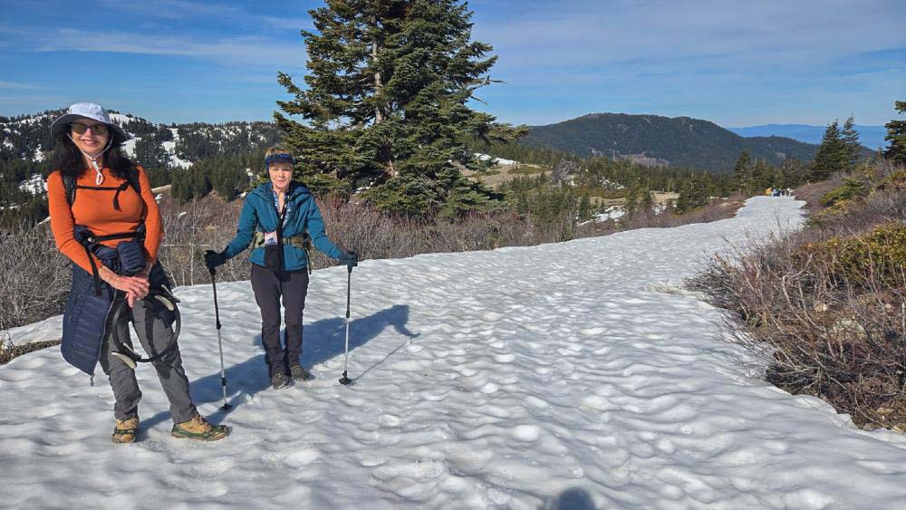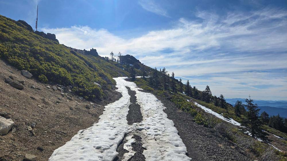 With the recent end of the ski season, we moved up our hike on Mt. Ashland while there was still some snow remaining. There was no need for snowshoes, but Yaktrax and spikes helped to negotiate the icy patches.