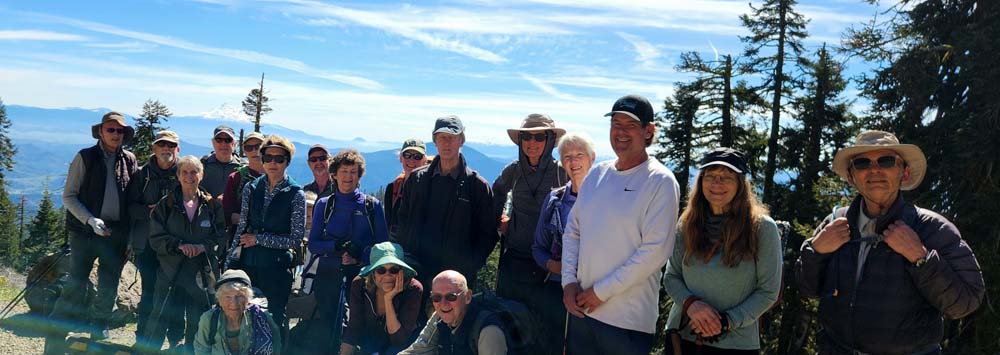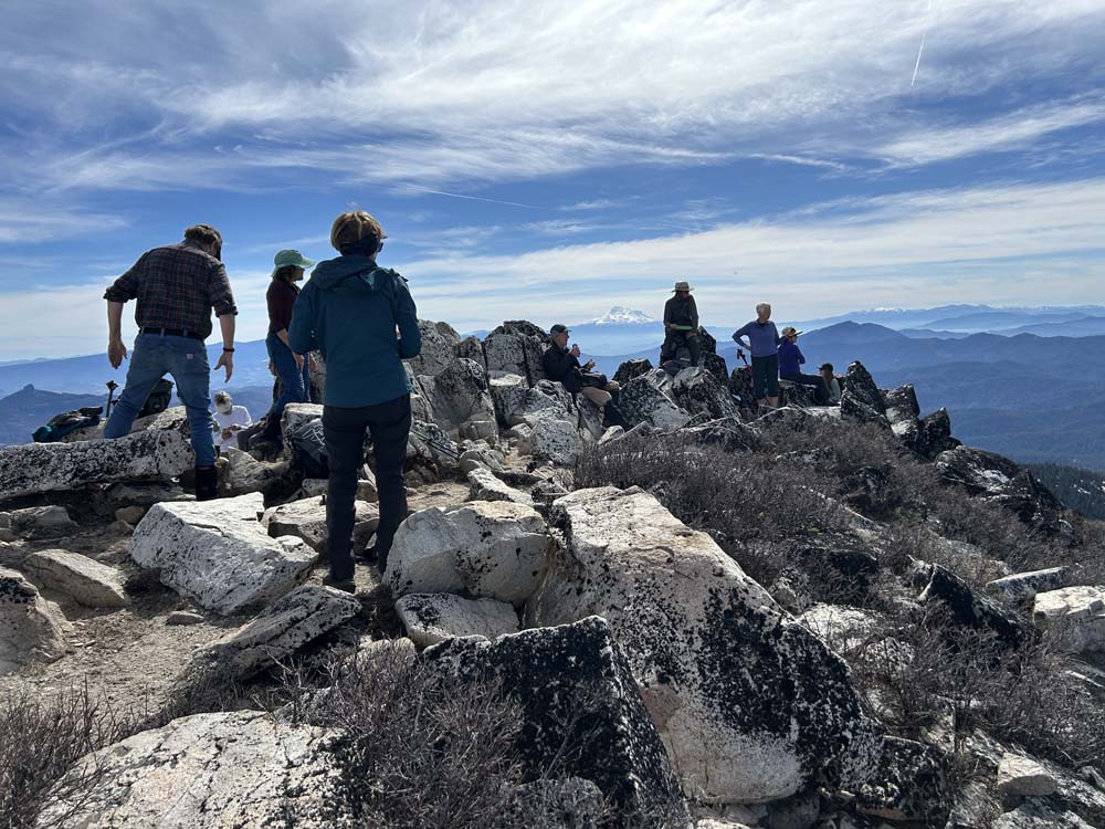Thanks to Jerry and Nurse Lisa for watching out for me as I struggled with a weak heart up the road. We settled down at a picnic table in the Mt. Ashland campground and viewed Shasta during lunch, and waited for the rest of the group to return from the summit for our group photo.